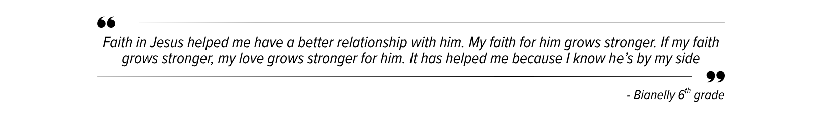 Students are able to take a journey through the Bible from Genesis to Revelation. Students identify attributes of biblical character while reviewing specific scripture verses. In addition, students learn the importance of prayer and the attributes of God. We encourage Christian discipleship and leadership as students are able to grow and lead by participating in chapel services, serving as prayer partners and school leaders.